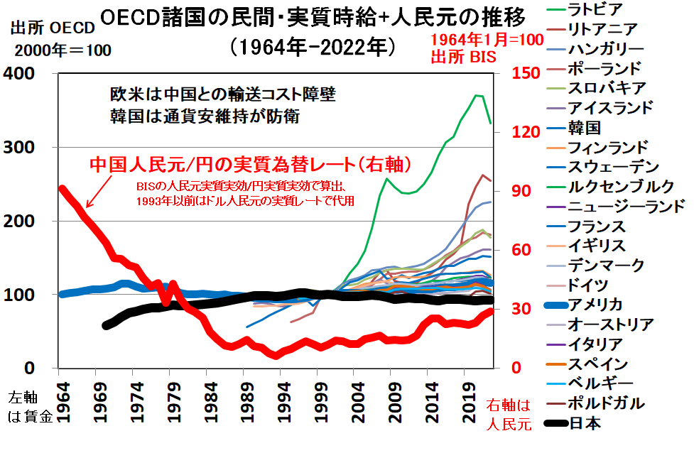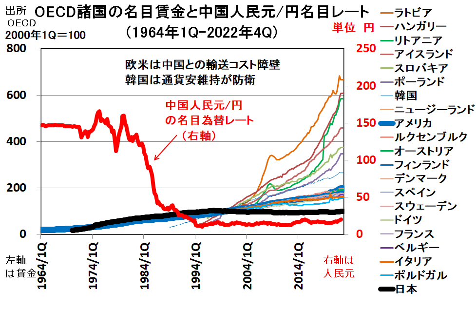 欧米は中国との貿易で高い輸送コストが必要です。この輸送コスト障壁で一定程度守られています。日中間では輸送コスト障壁が小さいです。そのため、賃金の同一化が進みやすいのです。