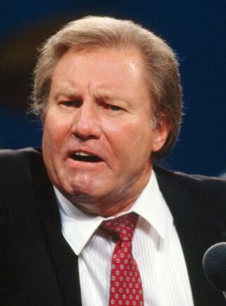 (左 : ジョン・ハギー / パット・ロバートソン / ジミー・スワガート / 右 : ジム・バッカー )